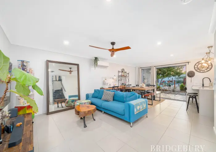 As you approach the property, your welcomed by a large undercover parking space ensuring you are kept dry when opening the property during the raining days. Upon entering you are greeted by a spacious living and dining zone-complete with a split-system air conditioner, LED downlights, and exquisite ceiling fan. This central hub is ideal for both relaxed family living and entertaining guests. Adjoining this open plan living space is the separate laundry and WC.