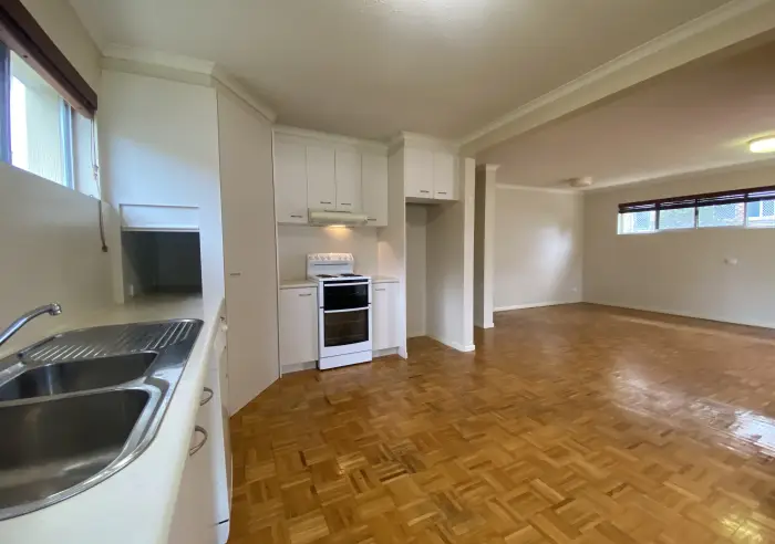 The well-appointed kitchen adjoins seamlessly, offering generous bench space and practical functionality for everyday living.