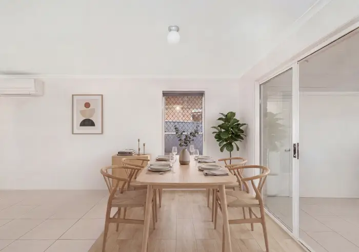 Flowing on from the kitchen, the internal entertaining/dining area is equally bright and inviting, enhanced by dual-aspect windows and direct access to both the rear yard and the driveway. This versatile space is perfect for relaxing or entertaining, with a natural sense of openness that connects effortlessly to the outdoors.