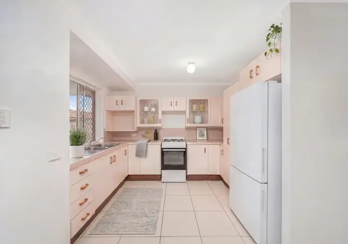 Inside, you're welcomed into a spacious, light-filled kitchen and living area. Large front windows allow natural light to flood the space, while a split-system air conditioner ensures year-round comfort. The well-designed kitchen offers ample cabinetry and functionality, with a window overlooking the internal entertaining/dining area-creating a seamless connection between indoor and outdoor living.