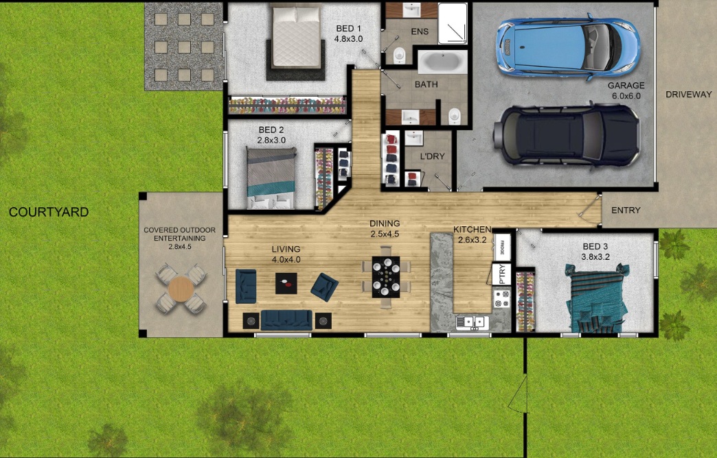 3 bedrooms | 2 bathrooms | Double lock-up garage - Single-level design