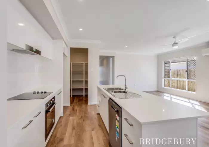 At the heart of the home, the open-plan kitchen, dining, and living area flows seamlessly to a covered alfresco and fully fenced, low-maintenance yard-perfect for entertaining. The kitchen includes a walk-in pantry, ample bench space, and quality appliances.