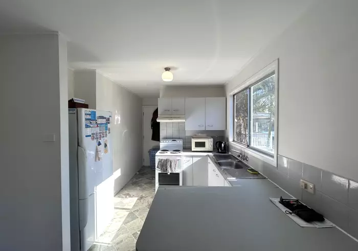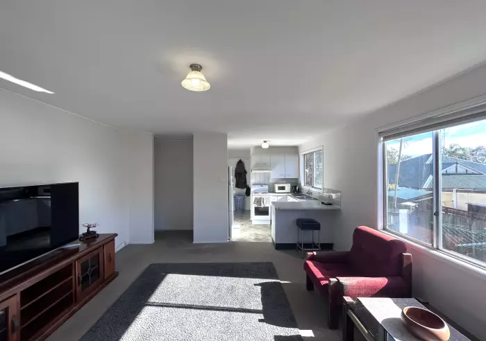 Both bedrooms are generously sized and include built-in wardrobes, while the open-plan living and dining area is filled with natural light and complemented by a functional kitchen offering ample cupboard space. Comfort is assured year-round with a split-system air conditioner servicing the main living area.