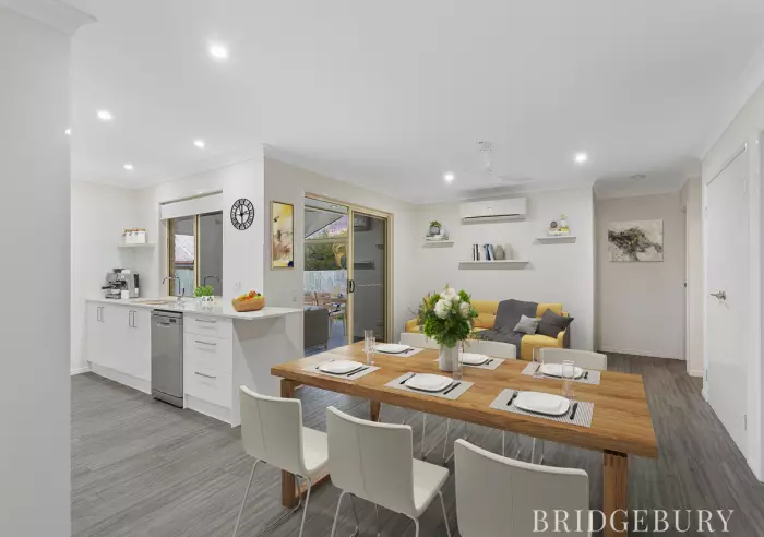 Stepping inside, you'll find a generous open-plan living and dining area designed for comfort and versatility, complete with air conditioning to keep the home cool through summer and cosy in the cooler months. The well-appointed kitchen offers ample cupboard and bench space, making it the perfect hub for family meals and entertaining.