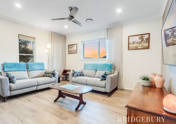 Outdoor living is where this property truly shines. The oversized covered entertaining area stretches over nine metres in length and can be enclosed along one side with blinds, making it a versatile space with plenty of privacy. Overlooking the solar-heated swimming pool and lush lawn, it is the perfect setting for family fun or relaxed evenings with friends. The wide side access is ideal for safely storing a caravan or trailer, while the low-maintenance yard benefits from a water reticulation system. A 24-panel solar system further adds to the home's appeal by delivering long-term energy savings.