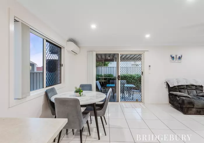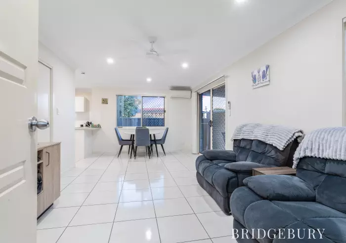 Stepping inside, you are welcomed by an open plan living and dining area that flows seamlessly to a private outdoor entertainment space. The home's layout is designed for relaxed everyday living, with a split system air conditioner providing year-round comfort. The modern kitchen is practical and well-proportioned, offering ample bench and cupboard space.