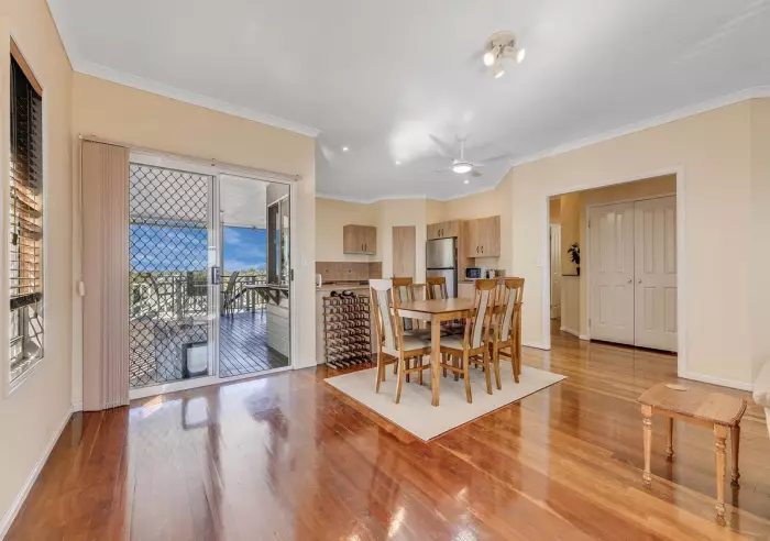 Timber flooring and high ceilings enhance the sense of space, while air conditioning and fans throughout ensure comfort year-round.